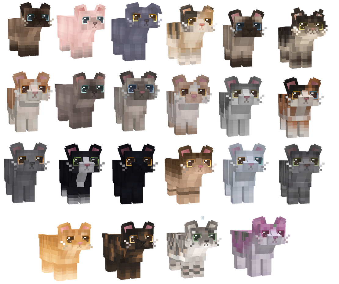 these variants can only be spawned by naming a nametag one of the names below in an anvil and using it on the cat
