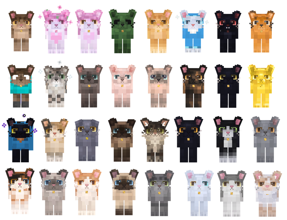 these variants can only be spawned by naming a nametag one of the names below in an anvil and using it on the cat